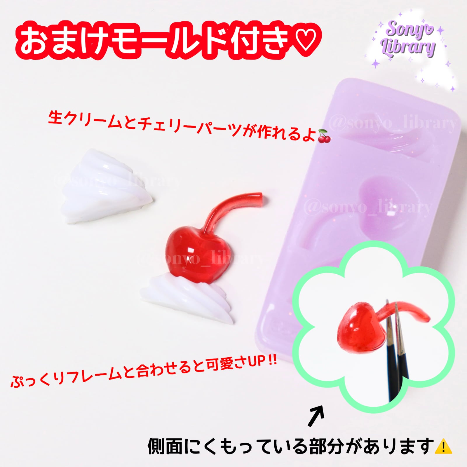 (Sonyo Libraryオリジナルシリコンモールドを使って作った作品(完成品)の販売は可能です。)